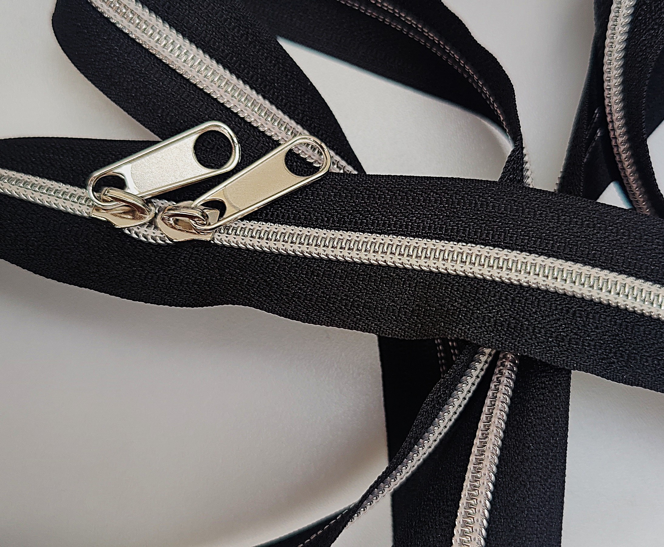 Fermeture noir maille 6mm dorée ou argentée avec lot de curseurs assortis